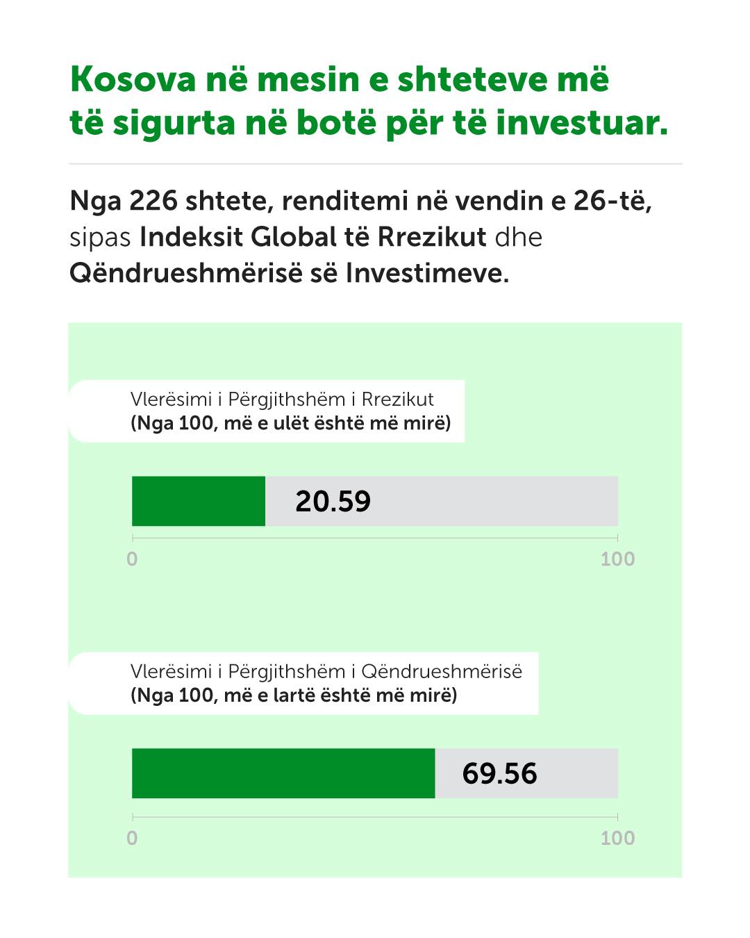 Nga 226 shtete, sipas Kurtit, Kosova renditet në vendin e 26-të, sipas Indeksit Global të Rrezikut dhe Qëndrueshmërisë së Investimeve të publikuar nga organizata Henley.