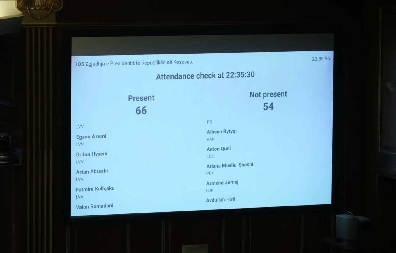 Prishtinë 05 mars 2026 23:15 Në mungesë të kuorumit, ka dështuar të mbahet seanca për zgjedhjen e presidentit/es. Por kryetarja e Kuvendit të Kosovës,...
