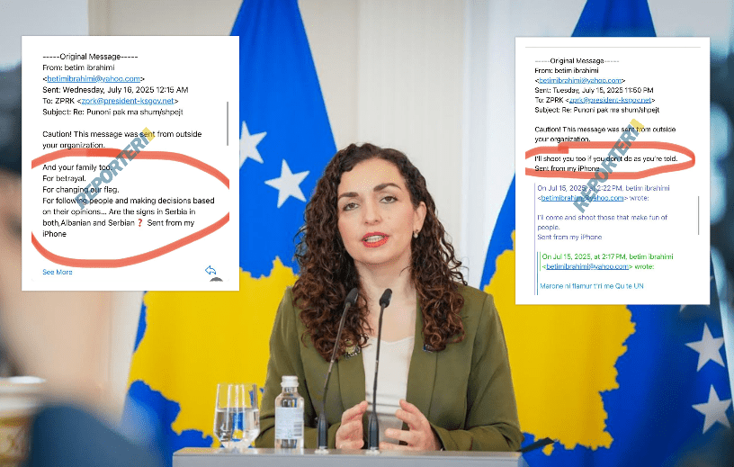 Prishtinë, 16 Korrik 2025 Presidentja e Kosovës Vjosa Osmani është kërcënuar sërish me jetë përmes e-mailit. E-maili kërcënues është dërguar në adresën e Presidencës...